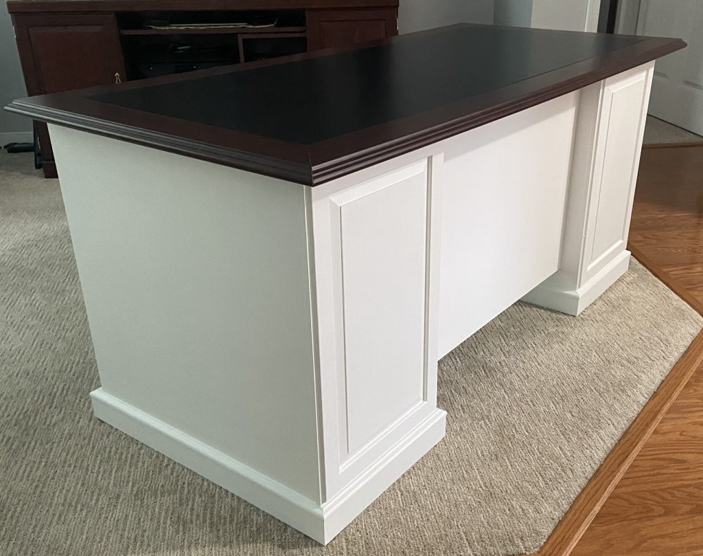 Office Desk – primed, bonded, and painted bottom half. Replaced hardware. August 2023